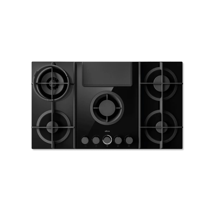 ELICA NIKOLATESLA FLAME BL Hood+Gas Hob 90cm 550m3/h Black Glass