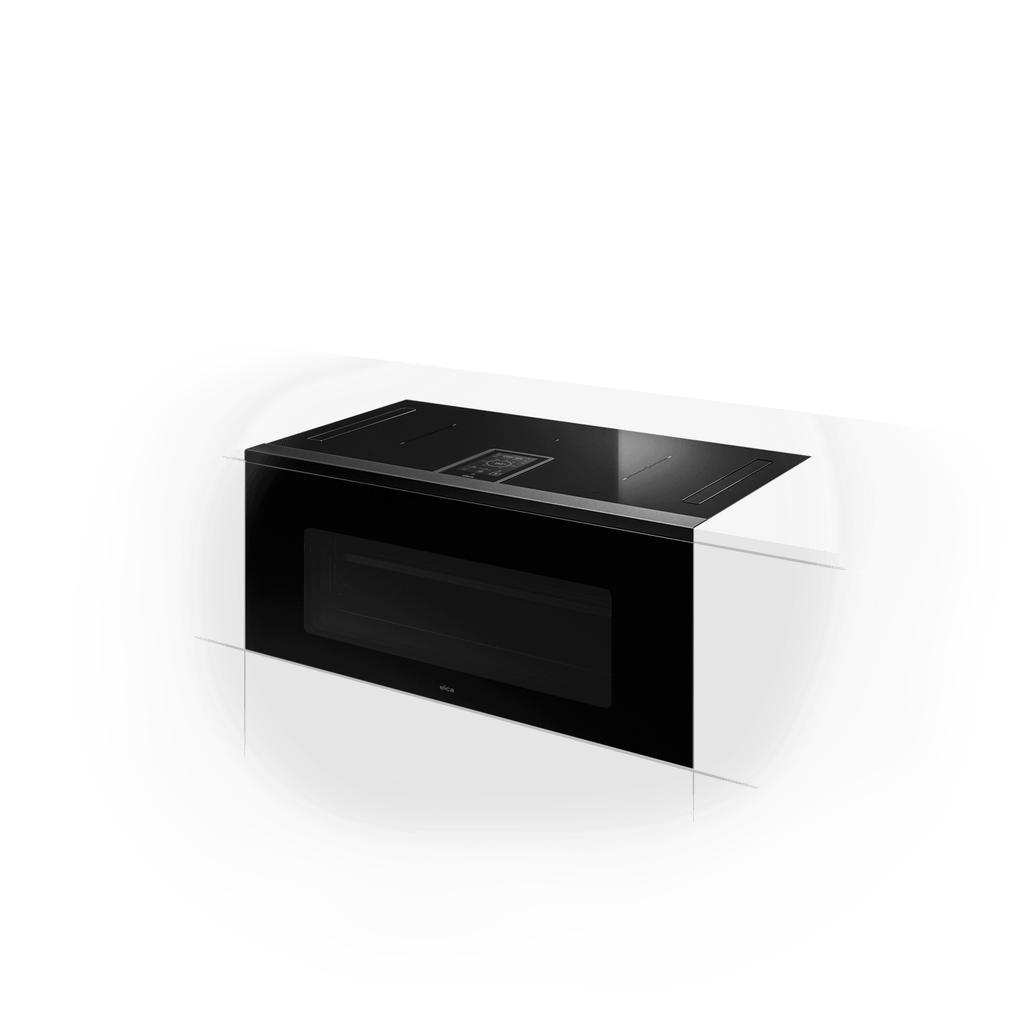 All-in-one product with CombiSteam oven, 5-zone hob, and extractor hood for vented operation - With built-in motor - Black - Width 900 mm