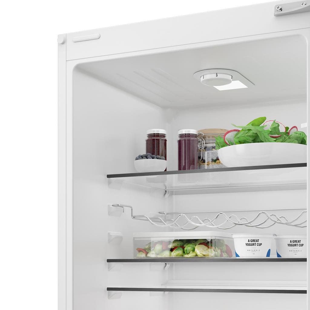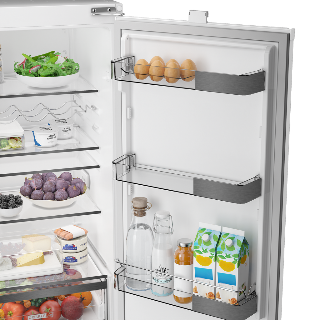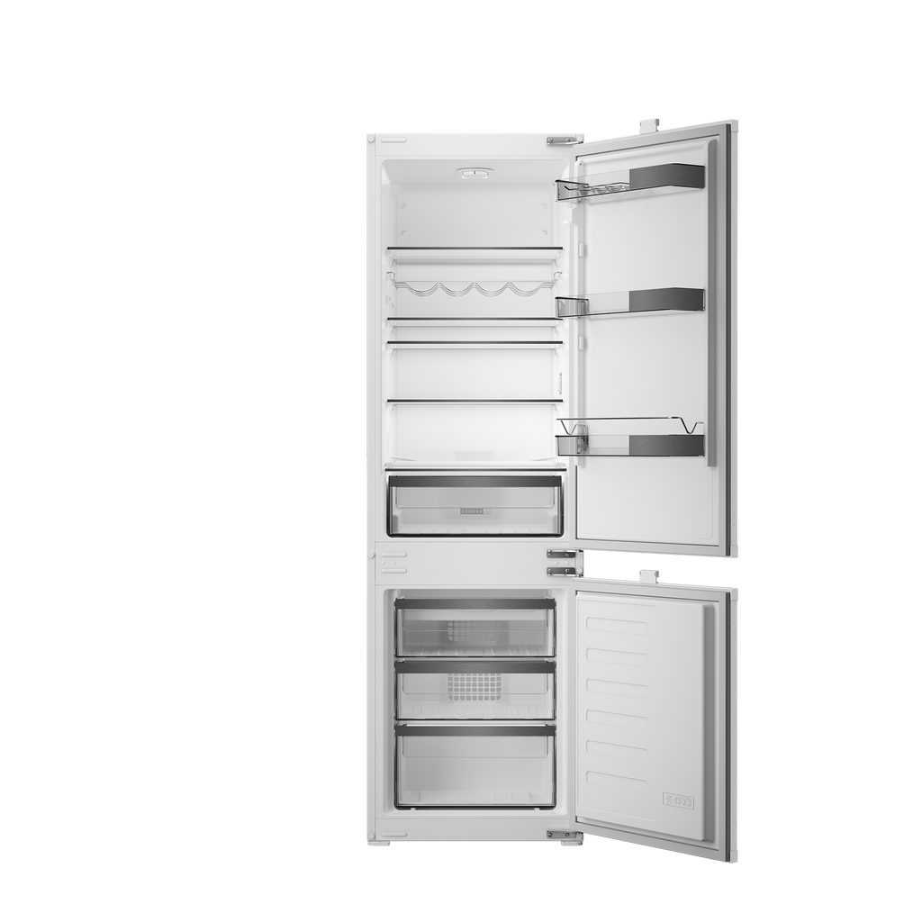 Built-in fridge freezer with 271L total net capacity, LessFrost technology, Fresh Box storage, LED lighting, and Ventilation for practical daily use and seamless kitchen integration.